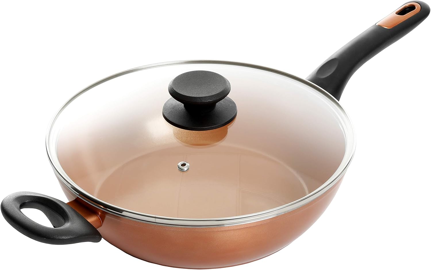 This gorgeous frying pan cooks great while looking great. Hummington Cookware from Gibson Home is made from forged aluminum that heats quickly and evenly so your cooking can be precise and hotspot free. Featuring Fusion TI SolGel ceramic nonstick coating that promotes healthy, low-oil meals, this skillet releases food effortlessly and makes clean up a breeze, ideal for eggs and other sticky foods. Manufactured without PFAS, PFOA, lead, and cadmium for safe, fume-free cooking, this piece makes a great addition to any kitchen. And the copper-colored exteriors will add a pop of high-end elegance to your stovetop. Sturdy soft-touch handles provide stable and comfortable grips that allow safer handling. Tempered glass lids let you monitor cooking progress and seal in flavors. Perfect for a wide range of cooking styles and recipes add these versatile and durable pieces to your kitchen and experience lasting precision performance.