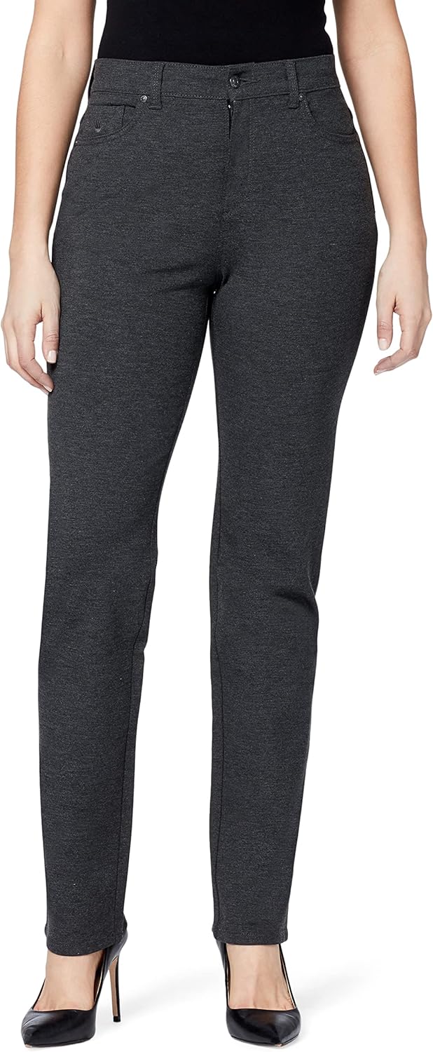 Gloria Vanderbilt Women's Amanda Ponte High Rise Knit Pant sits at natural waistline with fully functional pockets, front zipper fly, belt loops and contour hips on a relax taper leg body for that comfort fit you've come to love. This High waist ladies pant goes great with all tops from fashionable to tee shirts and all forms of footwear from your favorite flats to stylish heels and boots, perfect for work, class or happy hour with friends. The stretch fabric gives you comfortable movement with maximum recovery. Available in assorted solid colors, prints and stripes, see color name for specifics. - Gloria Vanderbilt is a versatile yet classic look that attracts and connects with the modern sensibility of consumers of all ages.