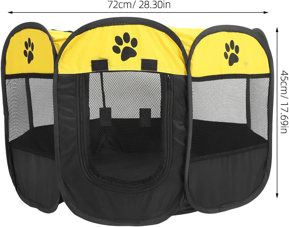 Package List 1 x pet nest Characteristics -Material:Oxford cloth -Versatile accommodation: suitable for cats, dogs, and other small pets, providing and comfortable habitat outdoor playpen for dogs -Attractive tent structure: the eight-sided tent design is both functional and visually appealing, creating a cozy retreat for pets dog cage -Size:72.00X72.00X45.00cm/28.30X28.30X17.68in -Color:Yellow -Product Info:Pet tent cage -Expansive space: ensures pets have plenty of room to relax and engage in activities, a healthy cat tent -Simple maintenance: the oxford fabric material is easy to clean, ensuring a sanitary space for your pets -Dual functionality: serves as both a birthing pen and a playpen, meeting diverse needs of pet owners puppy play pen for indoorsGoods Informationfoldable pet playpen Suitable for cats, dogs, and other pets, it provides and comfortable living space.outdoor dog playpen The versatile design allows it to function as a birthing room or an activity playpen, meeting various needs.portable playpen for dog and cat The Extra-Large Pet Octagon Tent offers a generous space for your pets to relax and play.dog crate foldable Its octagon shape is not only visually appealing but also provides a private and secure area for your pets.dog crates for medium dogs Constructed from durable Oxford fabric, this tent is simple to clean, a healthy environment for your pets